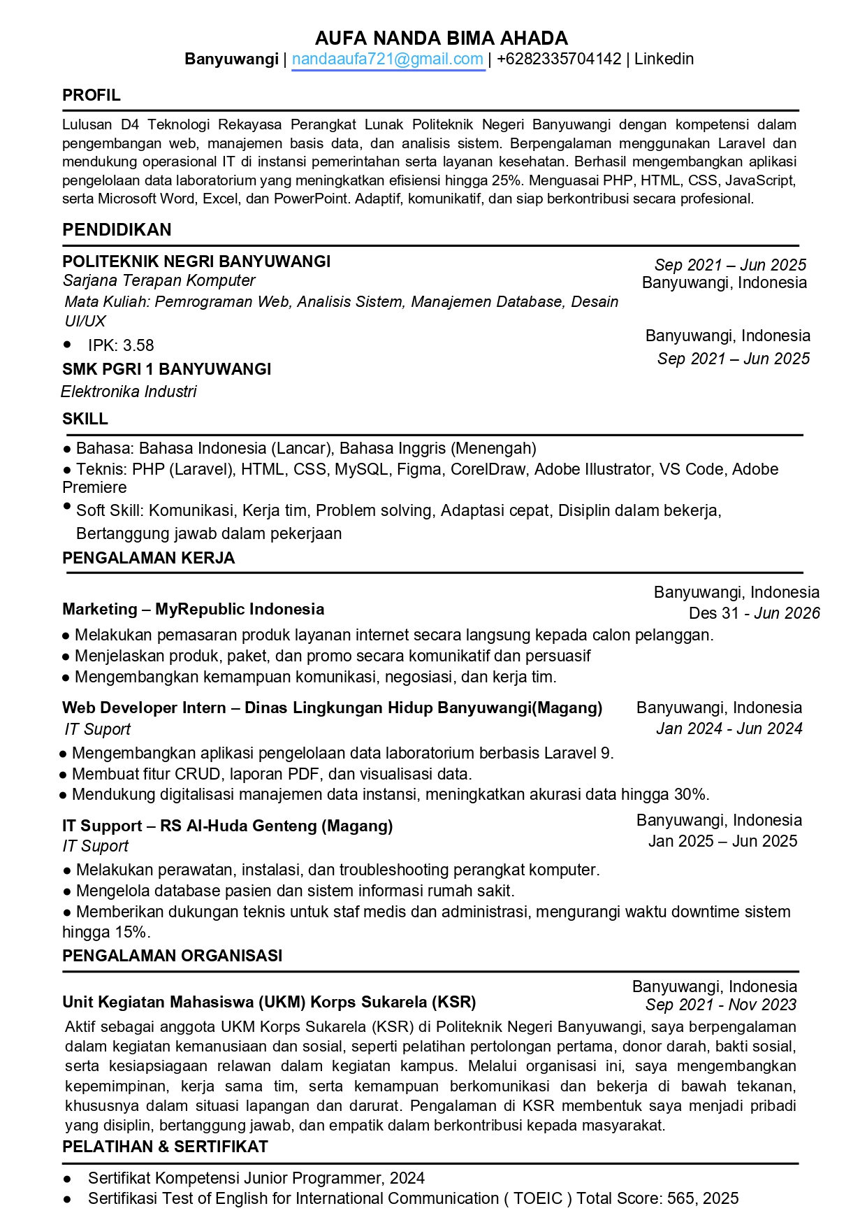 Berpengalaman Magang/PKL